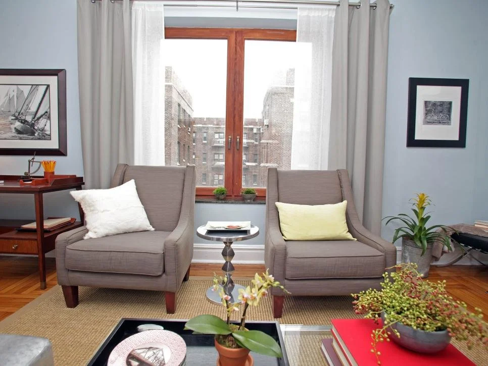 It costs around $1,350 for staging and updating living room decor with new light switches, outlet covers, floor registers, crown molding, chair rails and drapes, plus fresh flowers and accessories.