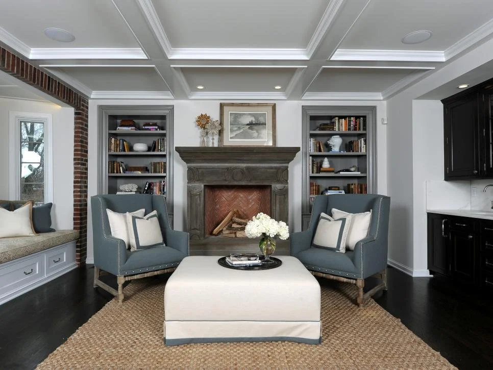 Shift furniture away from the walls to make living rooms feel larger and more contemporary. Create a seating area around a feature you want buyers to notice, like a dramatic fireplace.